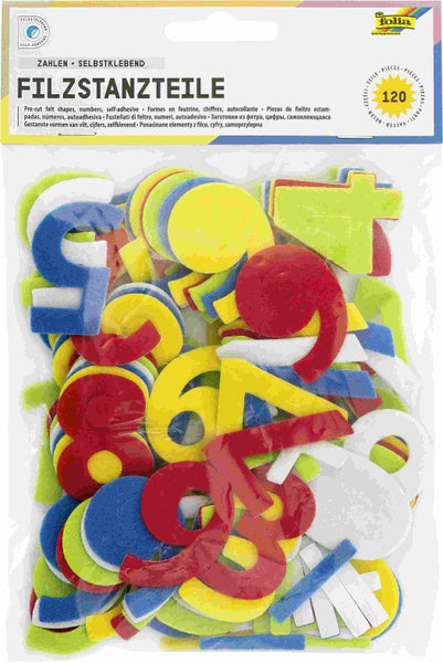 Folia Filzstanzteile ZAHLEN, selbstklebend, 120 Stück, farbig sortiert