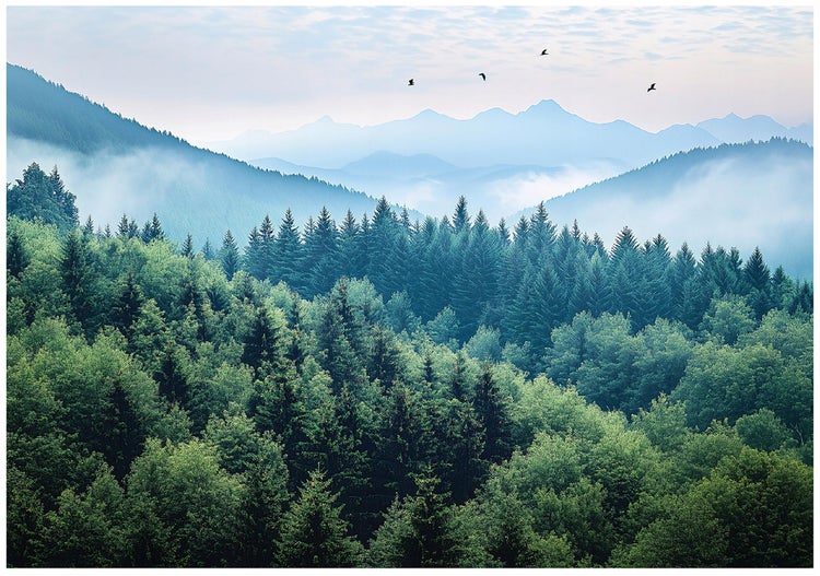 Fototapete 3D Effekt Wald im Nebel Wohnzimmer Vlies Tapete 400x280 cm