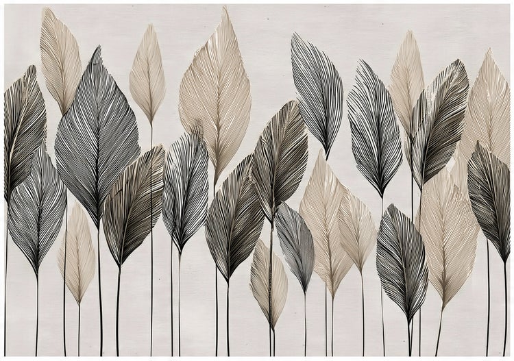 Fototapete Blätter Abstrakt Beige Boho Wohnzimmer Vlies Tapete 300x210 cm + Kleister