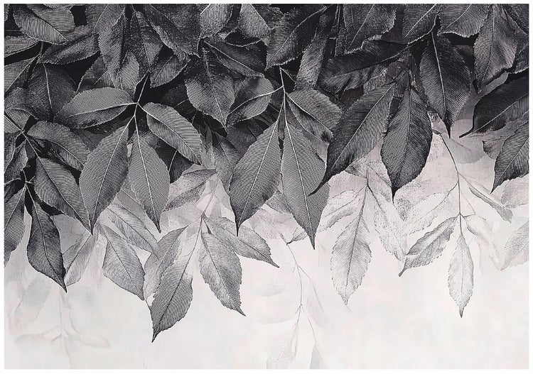 Fototapete Blätter Grau Natur Wohnzimmer Vlies Tapete 300x210 cm + Kleister