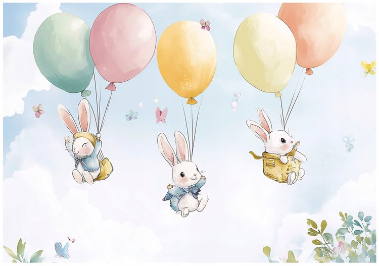 Fototapete Kinderzimmer Mädchen Kaninchen Wolken Tapete Kinder 250x175 cm + Kleister