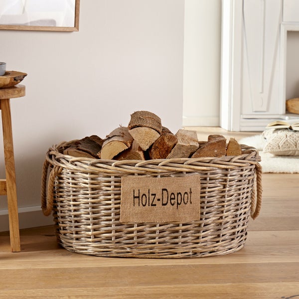 Ein Holzkorb ist ein praktisches Utensil, um das Brennholz für den Kamin oder Ofen zu transportieren. Der charmante Shabby-Look des Korbes verleiht ihm einen rustikalen Touch und macht ihn zu einem hübschen Accessoire in Ihrem Zuhause. Die grau gekalkte Voll- und Spaltweide ist stabil miteinander verflochten, sodass der Korb auch schwere Lasten problemlos tragen kann. Das robuste Jutefutter schützt den Korb zusätzlich und sorgt dafür, dass kein Holzsplitter oder Schmutz auf den Boden gelangt. Die rustikalen Hanfkordeln dienen als Griffe und machen das Tragen des Korbes angenehm. Mit diesem Holzkorb haben Sie nicht nur ein praktisches Utensil zur Hand, sondern auch ein dekoratives Element, das Ihrem Zuhause eine gemütliche Atmosphäre verleiht.