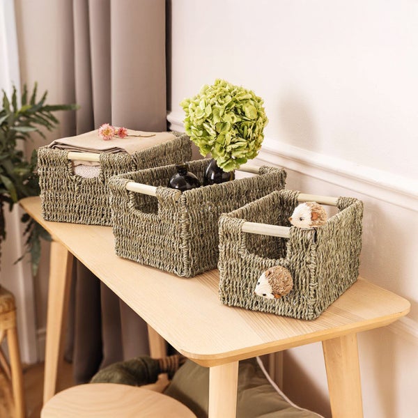 FRANK FLECHTWAREN | Aufbewahrungskorb Seegras, klein, SEEGRAS, METALL , 26 x 18 x 16 cm