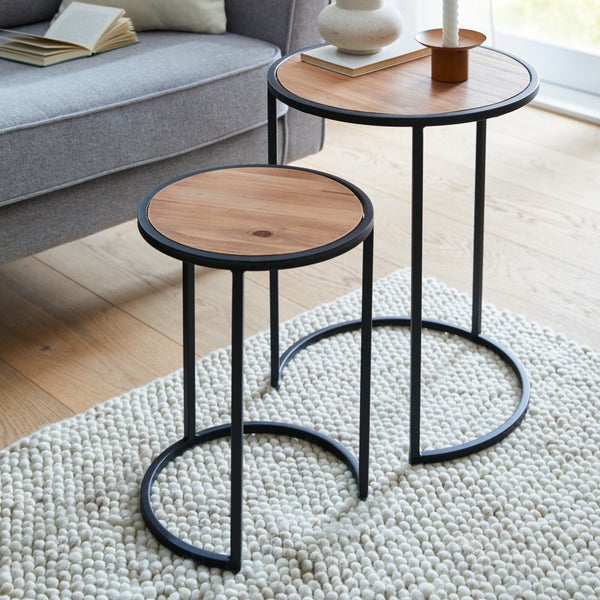 FRANK FLECHTWAREN | Beistelltisch Circle, 2er Set, METALL, HOLZ, 30 x 30 x 40 cm, 40 x 40 x 50 cm