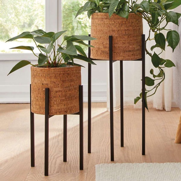 FRANK FLECHTWAREN | Blumenständer Metall, 2er Set, METALL, 24 x 24 x 25 cm, 24 x 24 x 55 cm