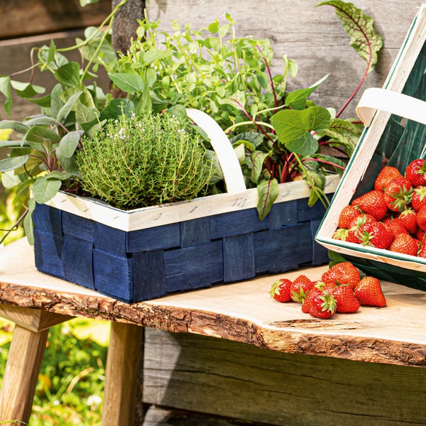 FRANK FLECHTWAREN | Bügelkorb Gefärbt, blau, HOLZ, 31 x 20 x 10 cm
