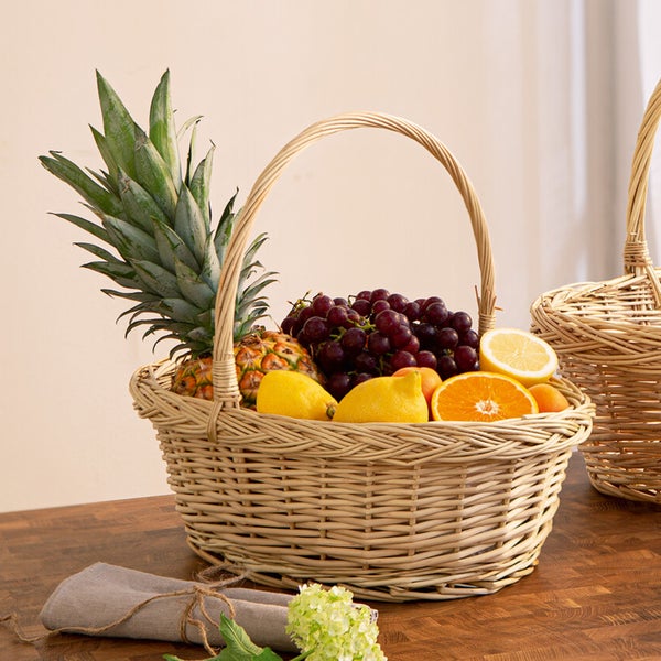 FRANK FLECHTWAREN | Bügelkorb Naturweiß, mittel, WEIDE, 40 x 30 x 16 cm, GH 35 cm