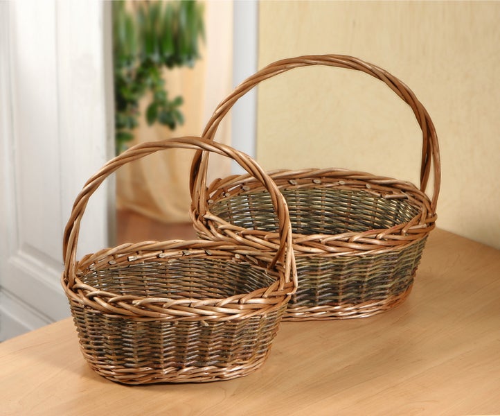 FRANK FLECHTWAREN | Bügelkorb Zopfrand, 2er Set, WEIDE, 33 x 24 x 14 cm, GH 33 cm, 38 x 30 x 16 cm, GH 38 cm
