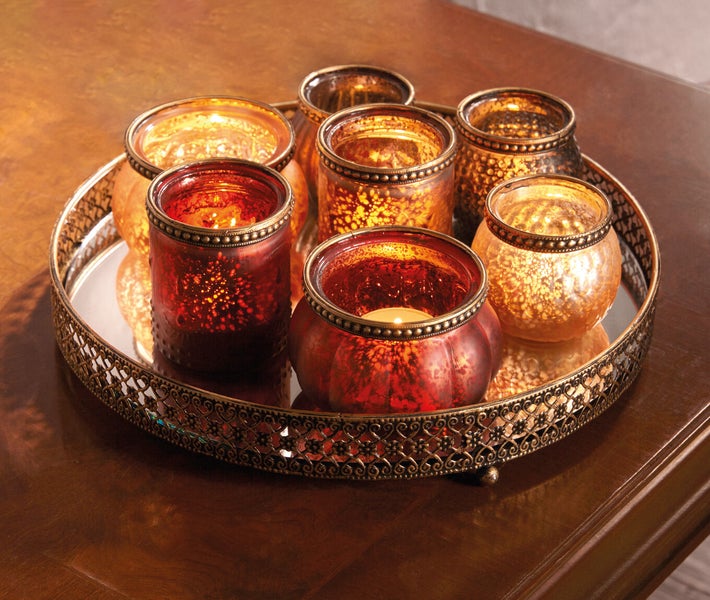 FRANK FLECHTWAREN | Deko-Set Morgenland, 8tlg., GLAS, Tablett Ø 27 x 4 cm, ohne Teelichter
