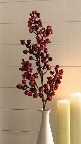 FRANK FLECHTWAREN | Deko-Zweig Rote Beeren, KUNSTSTOFF, METALL, Gesamtlänge 73 cm