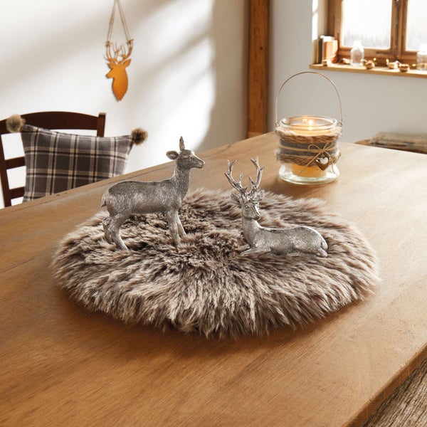 FRANK FLECHTWAREN | Dekofell Light Platin, rund, POLYESTER, POLYACRYL, Ø 40 cm