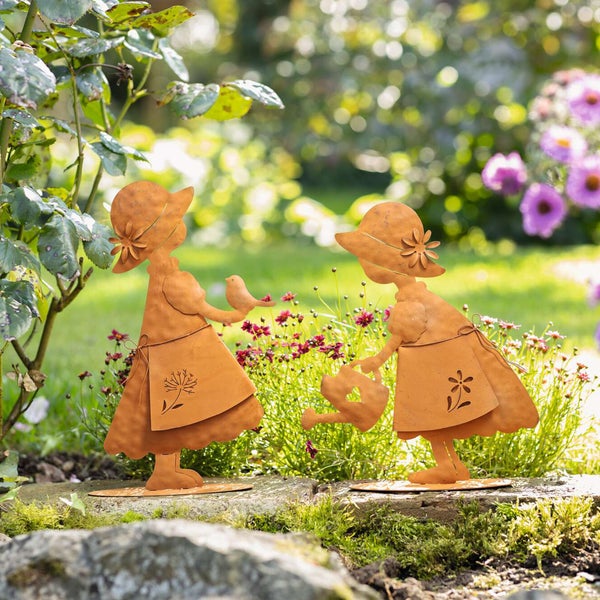 FRANK FLECHTWAREN | Dekofigur Mädchen, 2er Set, METALL, 23 x 6 x 28 cm, 20 x 6 x 30 cm