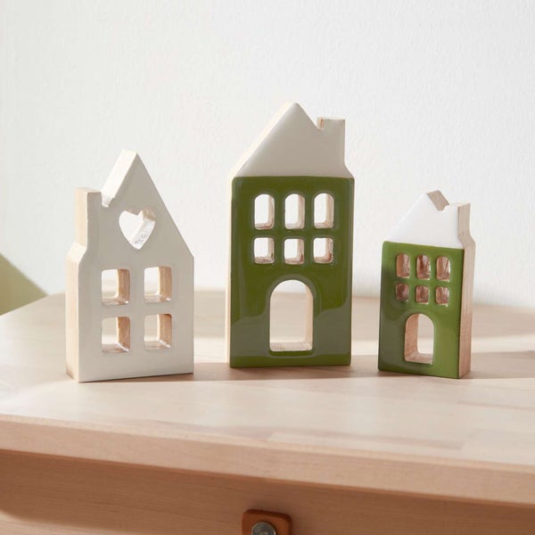 FRANK FLECHTWAREN | Dekohaus Two-Tone, 3er Set, HOLZ, 4,7 x 2,5 x 10 cm, 7 x 2,5 x 12,5 cm, 7 x 2,5 x 15 cm