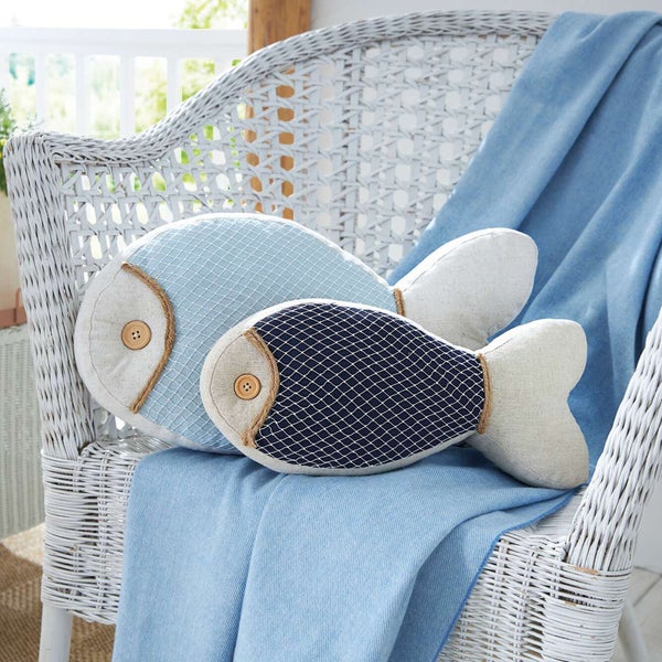FRANK FLECHTWAREN | Dekokissen Fisch, 2er Set, LEINEN, POLYESTER, TEXTIL, JUTE, 36 x 5 x 26 cm, 50 x 12 x 15 cm