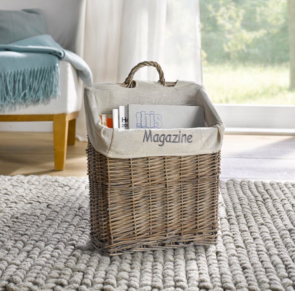 FRANK FLECHTWAREN | Dekokorb Magazine, WEIDE, POLYESTER, BAUMWOLLE, Breite 30 cm, Tiefe 14 cm, GH 45 cm, vordere Höhe 27 cm, hintere Höhe 37 cm
