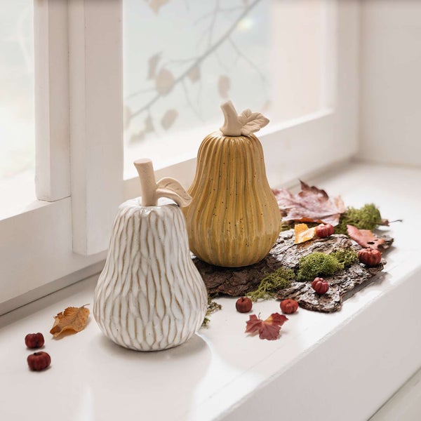 FRANK FLECHTWAREN | Dekokürbis Struktur, 2er Set, PORZELLAN , 9 x 9 x 14 cm