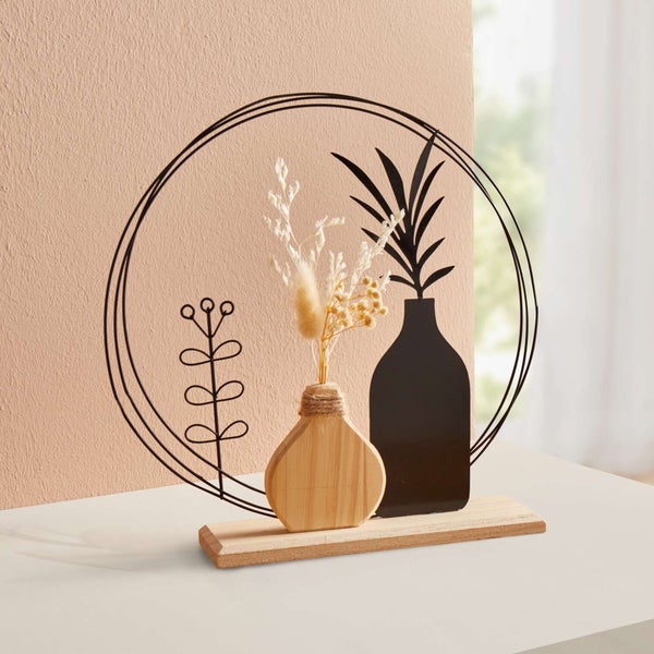 FRANK FLECHTWAREN | Dekoring Vasen, METALL, HOLZ, KUNSTSTOFF, 26,5 x 6 x 27,5 cm