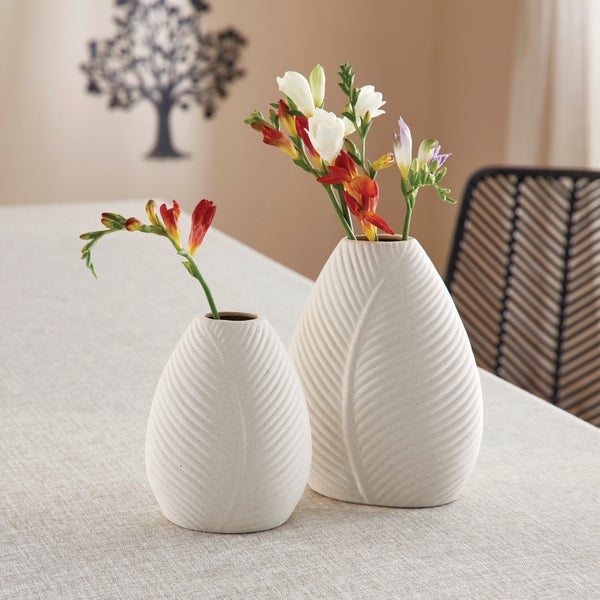 FRANK FLECHTWAREN | Dekovase Blatt, 2er Set, PORZELLAN, 13 x 8,5 x 15,5 cm, 16 x 10 x 20,5 cm