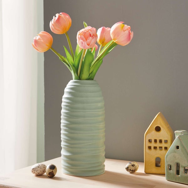 FRANK FLECHTWAREN | Dekovase Salbeigrün, PORZELLAN, 10 x 10 x 21 cm