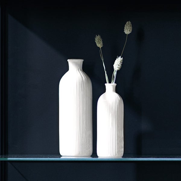 FRANK FLECHTWAREN | Dekovase Weiß, 2er Set, PORZELLAN, 5 x 5 x 15 cm, 6,5 x 6,5 x 20 cm