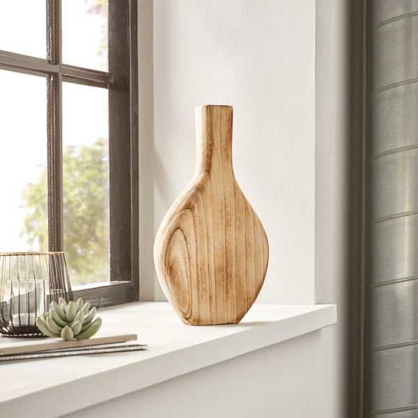 FRANK FLECHTWAREN | Dekovase Wood, flach, PAULOWNIA, 19 x 5,5 x 34 cm