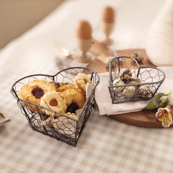 FRANK FLECHTWAREN | Drahtkörbchen Herz, 2er Set, METALL, Ø12 x 5 cm, Ø 16 x 8 cm