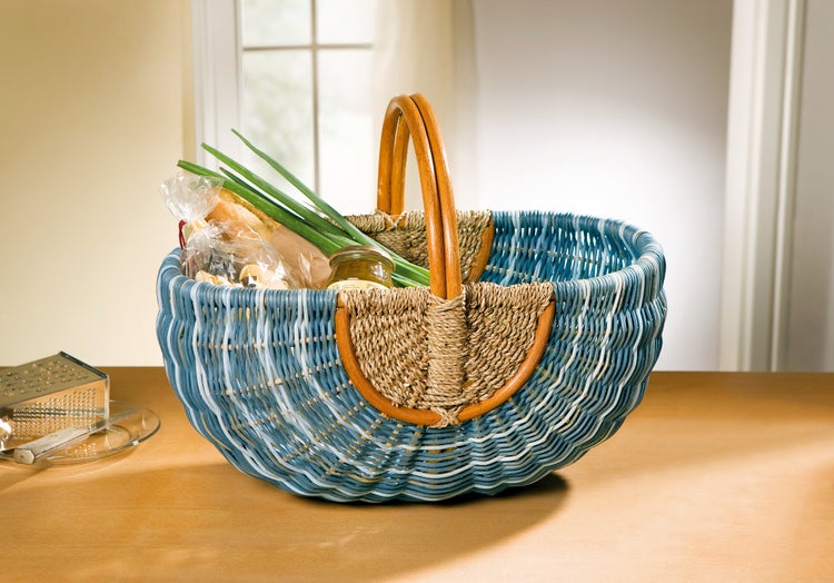 FRANK FLECHTWAREN | Einkaufskorb Blau/Natur, RATTAN, 49 x 34 x 24 cm, GH 38 cm