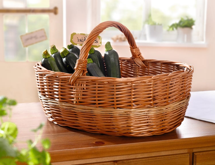 FRANK FLECHTWAREN | Einkaufskorb Dekorstreifen, WEIDE, 49 x 36 x 17 cm, GH 30 cm