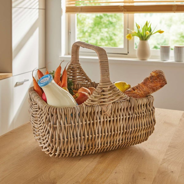 FRANK FLECHTWAREN | Einkaufskorb Rattan, 40 x 30 x 20 cm, GH 40 cm, RATTAN