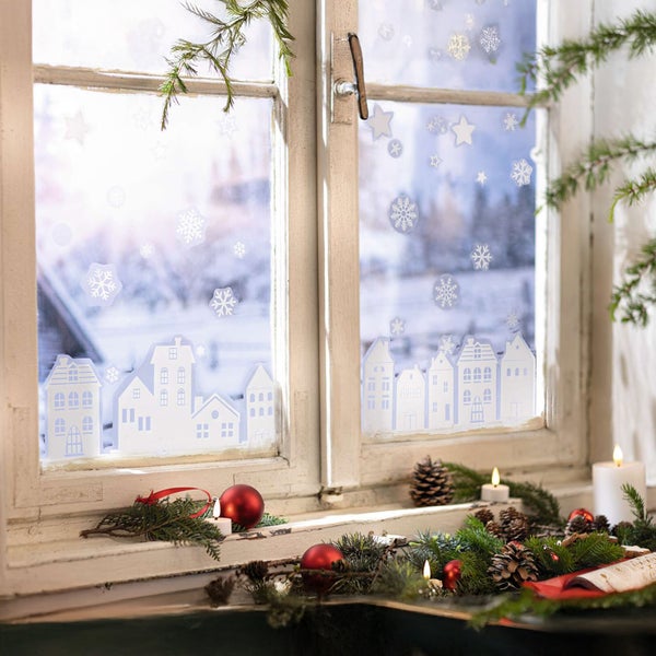 FRANK FLECHTWAREN | Fenstersticker Winterhäuser, 109er Set, KUNSTSTOFF , 30 x 40 cm