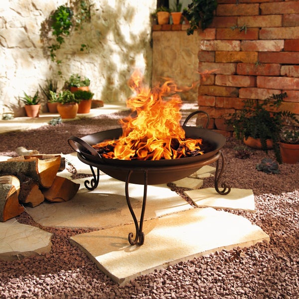 FRANK FLECHTWAREN | Feuerschale Rostoptik, 2tlg., METALL, Schale Ø 48 x 15 cm, GH 28 cm, nur für den Außenbereich geeignet