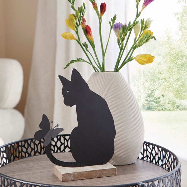 FRANK FLECHTWAREN | Figur Katze mit Schmetterling, METALL, MDF, 17 x 5,5 x 21,5 cm