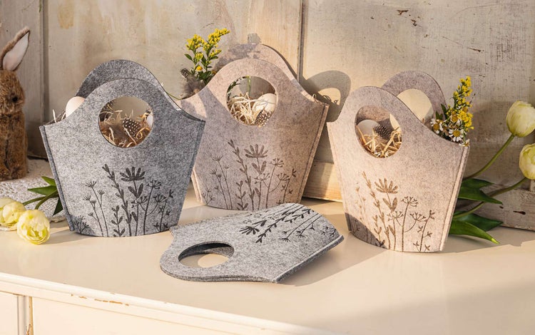 FRANK FLECHTWAREN | Filztasche Blumenwiese, 4er Set, FILZ AUS PET, 24 x 5 x 23 cm