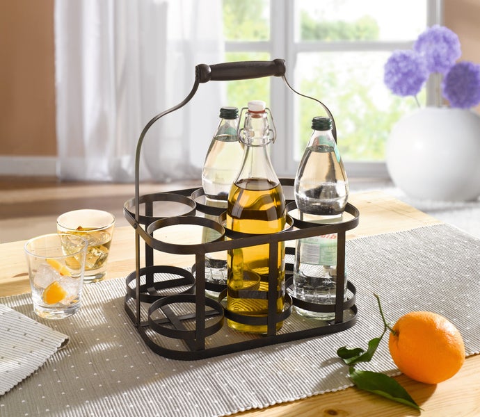 FRANK FLECHTWAREN | Flaschenkorb Metall, für 6 Flaschen, METALL, 32 x 21 x 16 cm, GH 37 cm, ohne Inhalt
