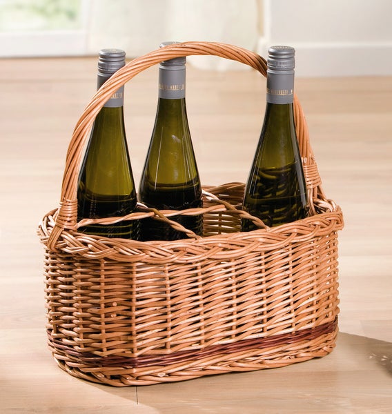 FRANK FLECHTWAREN | Flaschenkorb Rustico, für 6 Flaschen, WEIDE, 33 x 23 x 16 cm, GH 34 cm, ohne Inhalt