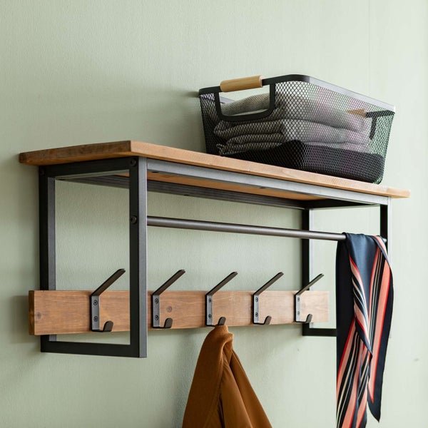 FRANK FLECHTWAREN | Garderobe Industrial, METALL, HOLZ, 72 x 20 x 27 cm