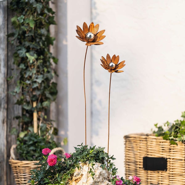 FRANK FLECHTWAREN | Gartenstecker Blume, 2er Set, 15 x 11,5 x 85,5 cm, 16 x 13,5 x 105 cm, METALL
