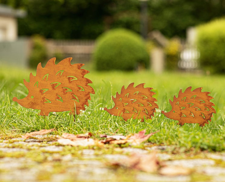 FRANK FLECHTWAREN | Gartenstecker Igel, 3er Set, METALL, H: 10 cm, H: 15 cm