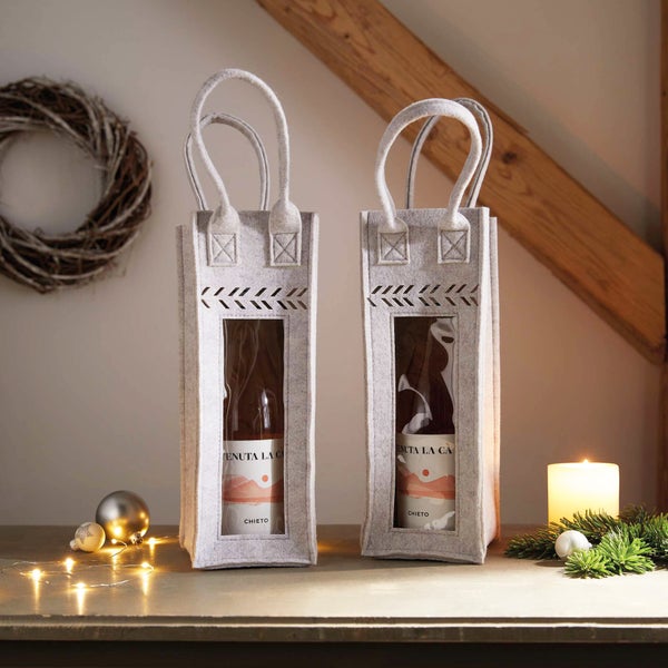 FRANK FLECHTWAREN | Geschenktasche Fenster, 2er Set, FILZ AUS PET, KUNSTSTOFF, 12 x 12 x 33 cm
