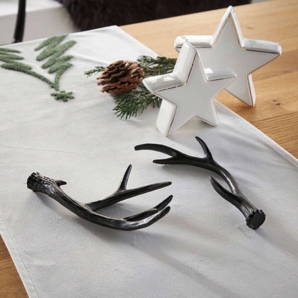 FRANK FLECHTWAREN | Geweih Schwarz, 2er Set, POLYRESIN, 4 x 3,5 x 20 cm, 10 x 5 x 19,5 cm