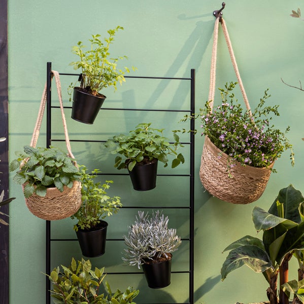 FRANK FLECHTWAREN | Hängekorb Seegras, 2er Set, SEEGRAS, JUTE, FOLIE, Ø 20 x 15cm , Ø 25 x 20 cm