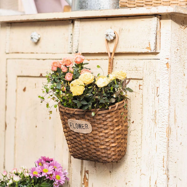 FRANK FLECHTWAREN | Hängepflanzer Holzspan, HOLZ, FOLIE, WEIDE, 26 x 19 x 21 cm, GH 43 cm