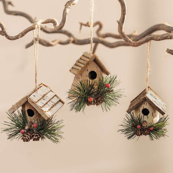 FRANK FLECHTWAREN | Hänger Vogelhäuschen, 3er Set, PAPIER, KUNSTSTOFF, NATURMATERIALIEN, Höhe ca. 7 cm