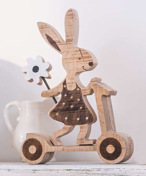 FRANK FLECHTWAREN | Häsin Osterfahrt, HOLZ, METALL, 17 x 4 x 23 cm