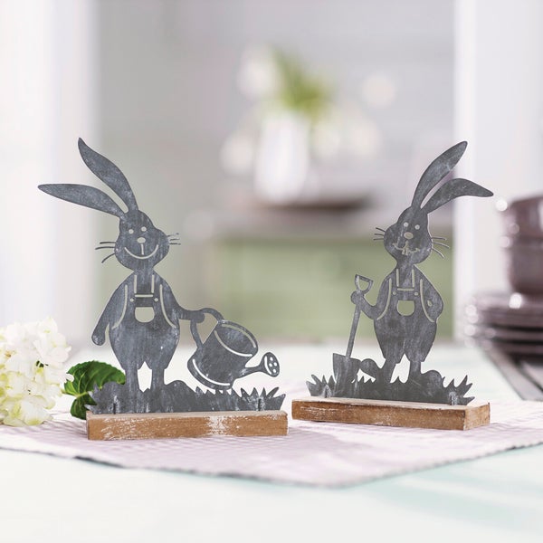 FRANK FLECHTWAREN | Hase Gartenarbeit, 2er Set, METALL, MDF, 14,5 x 5 x 21,5 cm, 18 x 5 x 22 cm