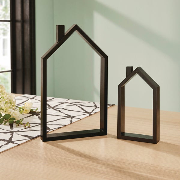 FRANK FLECHTWAREN | Haus Black, 2er Set, MDF, 10 x 3 x 18 cm, 17 x 3 x 29 cm