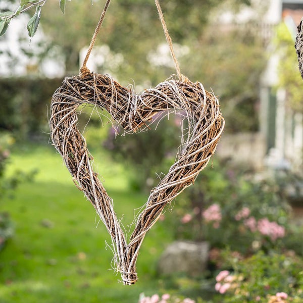 FRANK FLECHTWAREN | Herzhänger Weiße Zweige, AKAZIENHOLZ, ULME, MAGNOLIE, 45 x 55 cm, GH 88 cm
