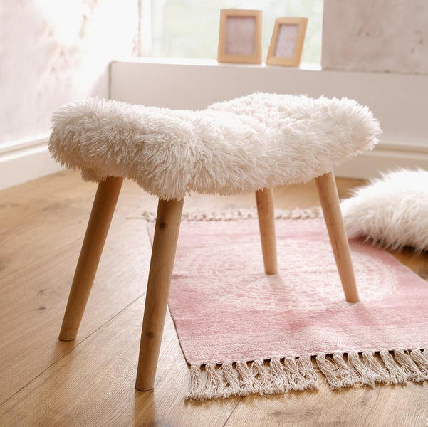 FRANK FLECHTWAREN | Hocker Kuschelfell, HOLZ, ca. 50 x 24 x 40 cm