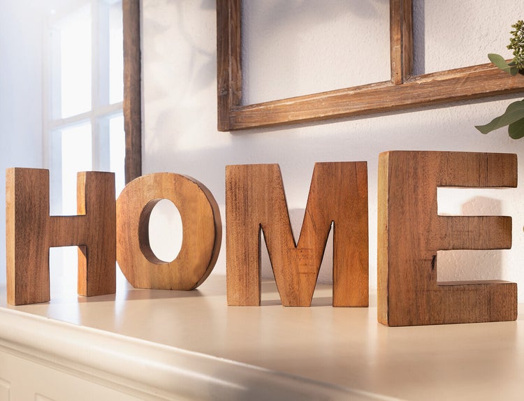 FRANK FLECHTWAREN | Holzschriftzug Home, 4tlg., HOLZ, ca. Höhe 15 cm