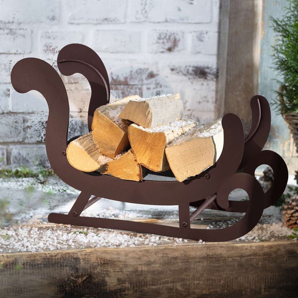 FRANK FLECHTWAREN | Kaminholzhalter Schlitten, METALL , 25 x 38,5 x 55 cm